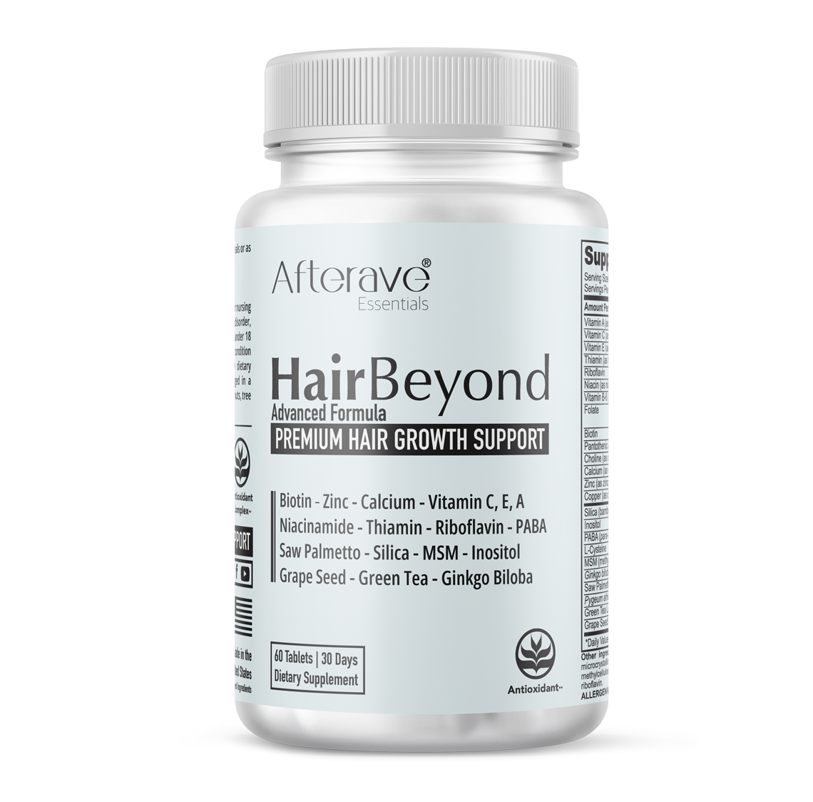 قرص Afterave hair beyond اولین مکمل مویی است که برای رسیدن به رشد بهینه مو است که از سلامت پوست کف سر حمایت میکند. اگر پوست کف سر شما محیط مناسب و سالمی باشد، موهای شما میتوانند به صورت بهینه و انفجاری رشد کنند.